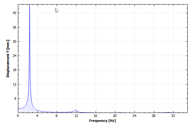 図 2 は、選択したポイント(座標 [m] X = 4.9469, Y = 0.05., Z = -4.9158)のY変位振幅に対する周波数掃引の結果を示しています。