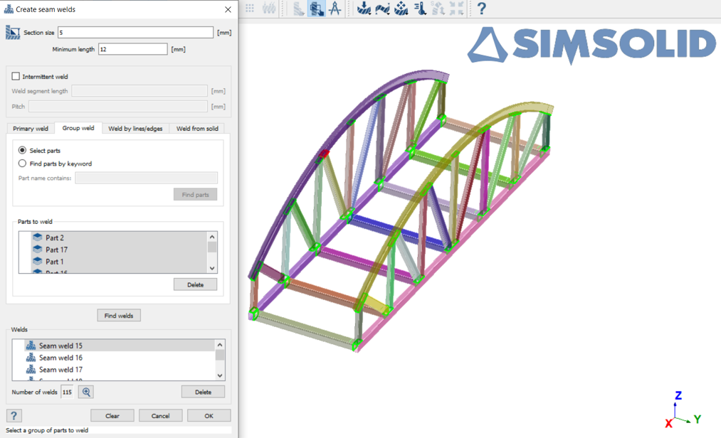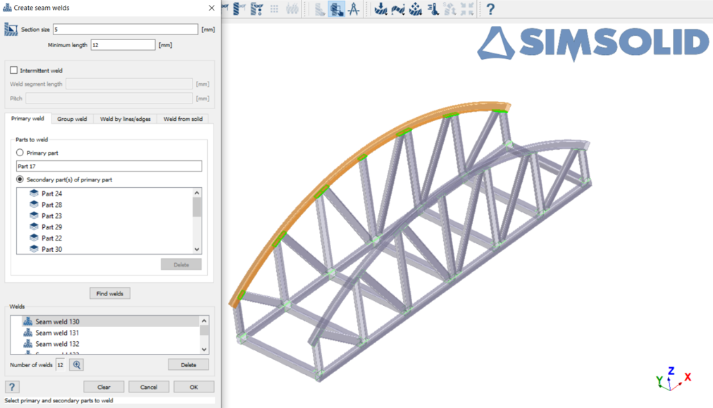 SimSolidでシーム溶接を作成します。