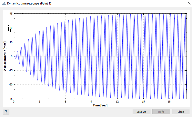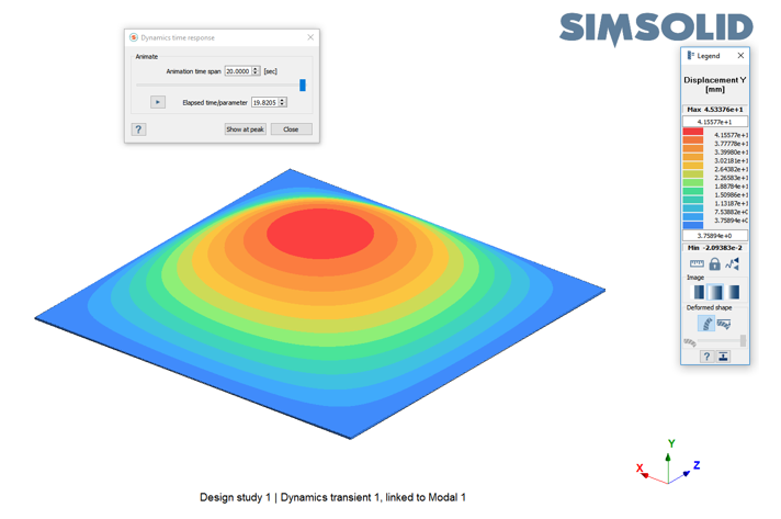 当激励频率等于方板的一阶固有频率时,响应达到峰值。它发生在激励开始后 19.82 秒。