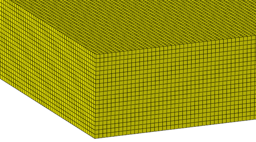 - 另一个 OptiStruct 模型用高密度(800000 个单元)网格运行。通过厚度(图 2)使用了 20 个线性 HEX 单元。这被认为是一个更好的比较。