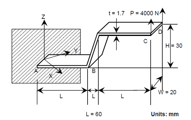 测试编号:VNL02 求出 Z 形悬臂梁在不同大小横向载荷作用下的竖向位移。