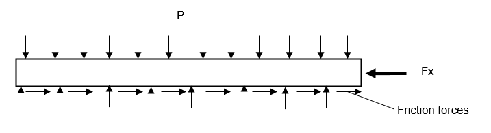 容易引起梁的滑移,而梁的滑移会被分布在接触区域的摩擦力所抵抗。在平衡状态下,力会投射到水平轴上: