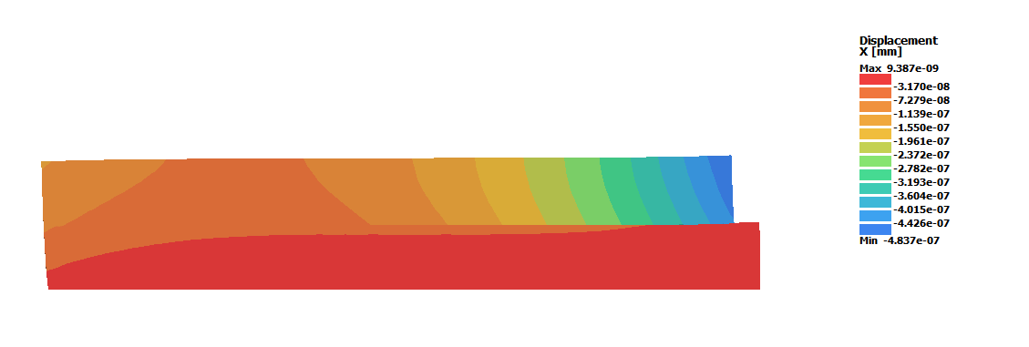 减小到了 0.29 N。在这种情况下,只发生部分滑移。梁的左端有一个明显的“粘附”接触区。