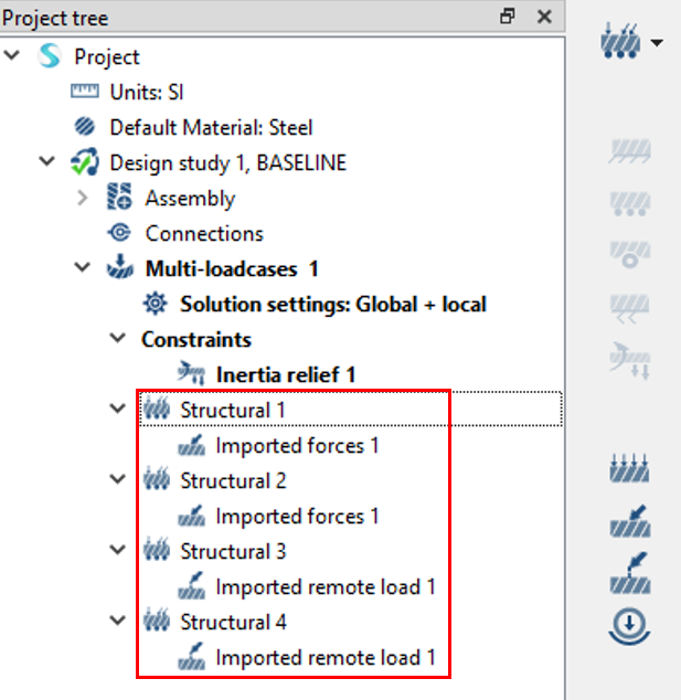 - 了解如何通过导入力和远程载荷以及手动创建每个子工况来添加载荷工况。
