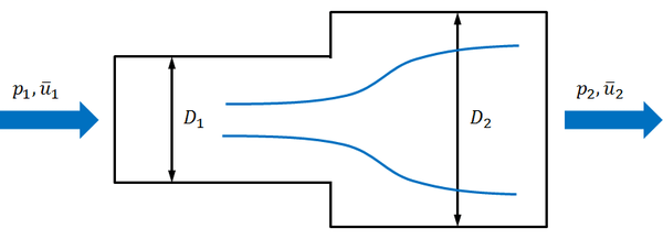 The component ExpansionContraction is a model of a cross section enlargement (diffusor) or a cross section reduction (nozzle). It depends on the flow direction.