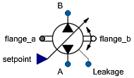 The main parameters of the pump are its maximum Displacement volume and the Rotational moment of inertia. The displacement volume can be adjusted by using the setpoint signal: