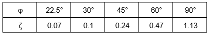 For bends without marked radius of curvature R, Zeta can be taken out of the following table and/or can be computed by interpolation: