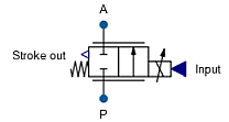 The component PropValve22PT2 is a model of a 2-way proportional valve where the stroke follows the input signal with a 2nd order delay.