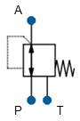 The component PressureControlValve is a model of a 3-port pressure control valve. It maintains a largely constant outlet pressure even at a variable (higher) supply pressure. In addition to a 2-port pressure reducing valve it also reduces the outlet pressure to tank.