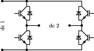 The H bridge is a four quadrant DC/DC converter. It consists of two single phase DC/AC converters which are controlled differently; see Fig. 1.