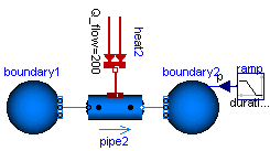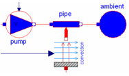 FluidHeatFlow, HeatTransfer Simple thermo-fluid pipe flow, especially to model cooling of machines with air or water (pipes, pumps, valves, ambient, sensors, sources) and lumped heat transfer with heat capacitors, thermal conductors, convection, body radiation, sources and sensors.