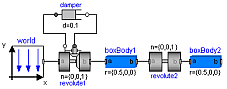 MultiBody 3-dim. mechanical systems consisting of joints, bodies, force and sensor elements. Joints can be driven by drive trains defined by 1-dim. mechanical system library (Rotational). Every component has a default animation. Components can be arbitrarily connected together.