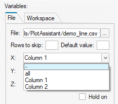 To Plot from Do this Delimited file Select the File tab. Any headers in your file are automatically populated in the list of variables: