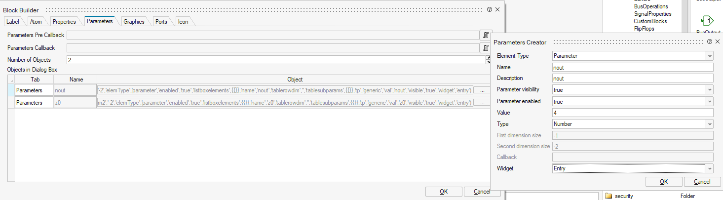 When the Block Builder is invoked with a masked super block, the SetParameters function of the block is automatically generated. This function contains the code responsible for constructing the diagram in the Super Block. In this case, the diagram is fixed.