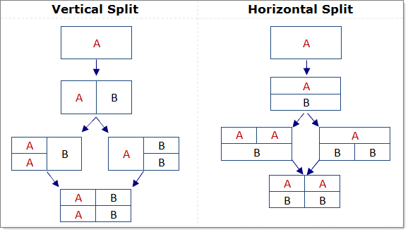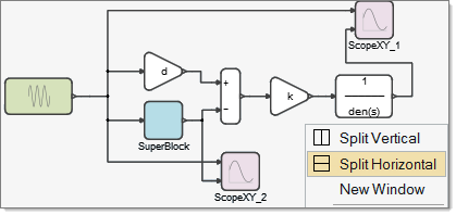 After splitting a window, you can select one of the new windows and navigate through the various levels of a model. You can also resize or float a window to view a particular diagram section.