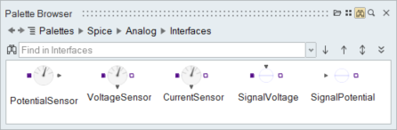 When modeling an electronic system in Twin Activate, two type of blocks are required from the Spice library: basic blocks, which contain the elementary SPICE components, and interface blocks, which include the connectors to combine electric circuits with other Twin Activate blocks.