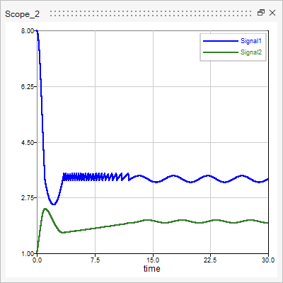 After running a simulation, view the plotted result data that is defined in the scope blocks.