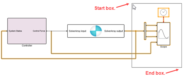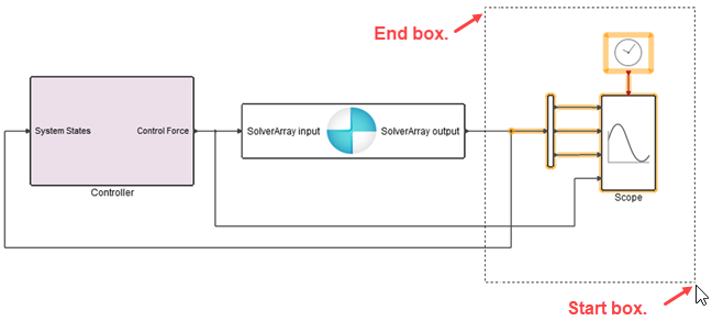 Select all objects in the diagram. | Press Ctrl+A. | If nothing is selected, Ctrl+A selects all ojects in the diagram. But if one object is selected, for example a block or a link, pressing Ctrl+A selects all ojects of the same type in the diagram, for example all blocks or all links. |