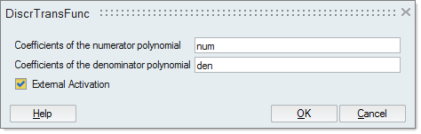 On the DiscrTransFunc block, double-click, and enter