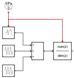 Connect the blocks so that the sine wave with additive noise passes through the