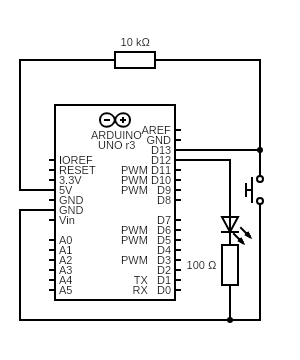 - LED block: This block represents the hardware to which the LED light is connected to pin 10 of the Arduino board.