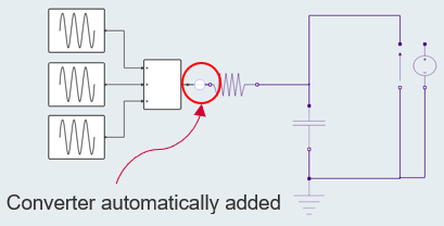 10. Connect the Scope block to the model. Note that the converters from the model to the Scope are automatically added to the model.
