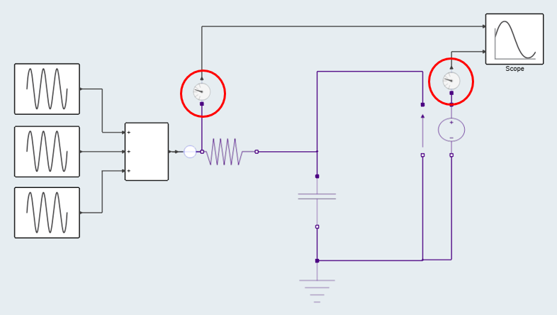 6. Connect the blocks you just added to the model. Note that the converter is automatically added between the Sum block and the Resistor.