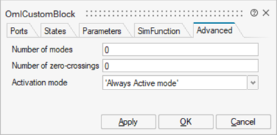 - Double-click the Oml Custom Block in your model.