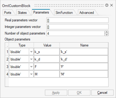 is called to define the the variable k_d as equal to the given Object Parameter 2, which is defined in the Parameters tab.Yes F=vssGetOparData(block,3);