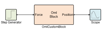 Drag an OML Custom Block, Step Generator and Scope block into your model