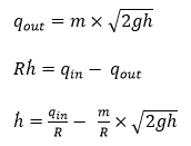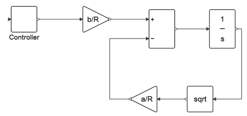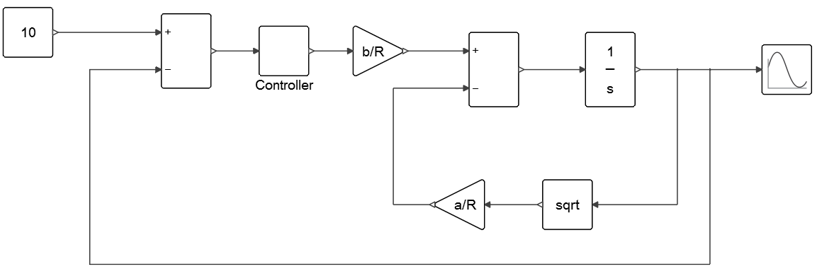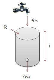By controlling the inflow rate qin of water into the tank, the water level h can be reached within a given time. The given system model has only one input and one output, qin and qout, and therefore requires the addition of a classic PID controller to control the flow rate of water.