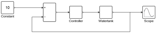 In a water tank model, a PID controller is added to regulate the flow of water into the tank.