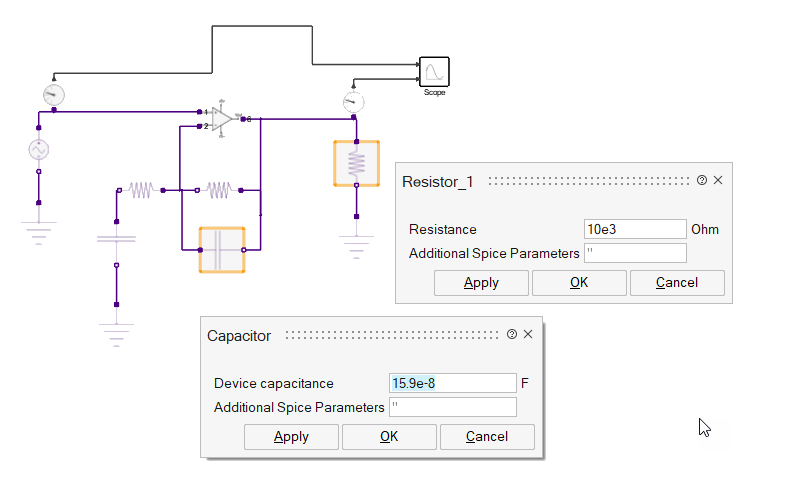 4. Experiment and change the parameter values in the components such as the Resistor and Capacitor.