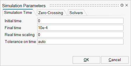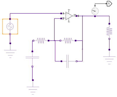 To set up a small signal frequency analysis, select a source block in the circuit model and define it with AC parameters.