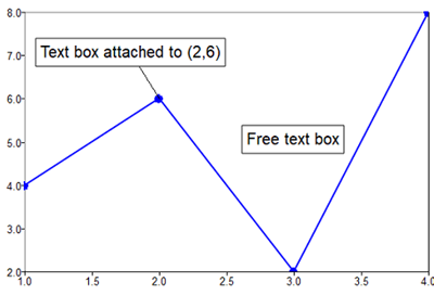 In 2D plots the property 'attached' may be used to control whether the text box will be connected to its origin point. By default 'attached' is 'on'. Example: