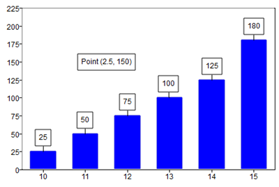 text(2.5, 150, 'Point (2.5, 150)')