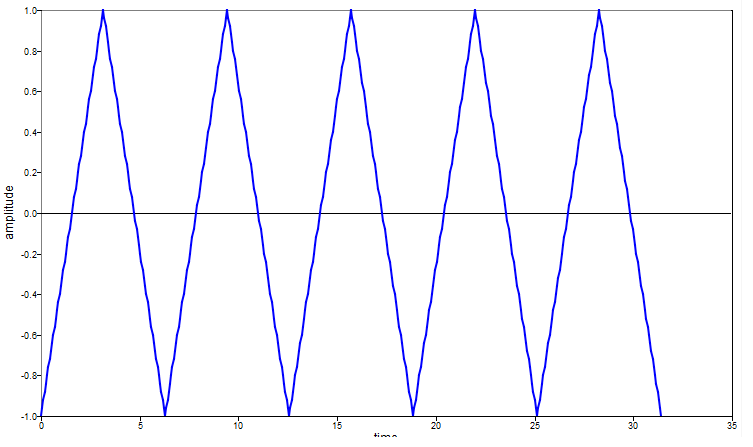 Generate five periods of a sawtooth wave that has symmetrical teeth.