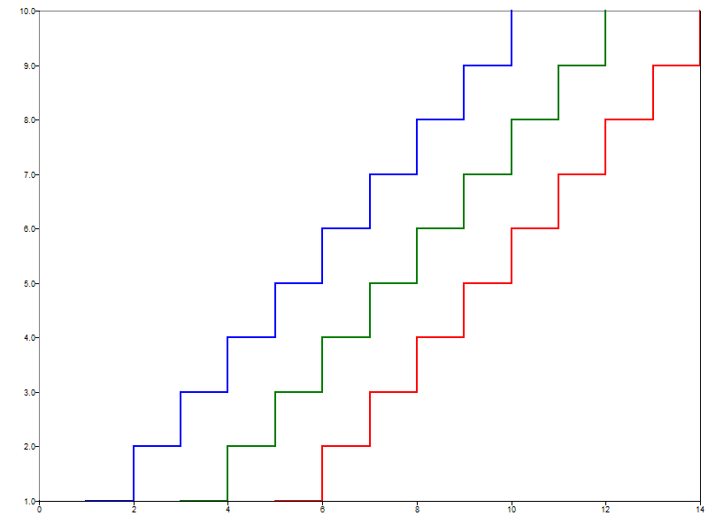 h = stairs([1:2:10 11:14], [1:5 4:-1:1], 'r--');