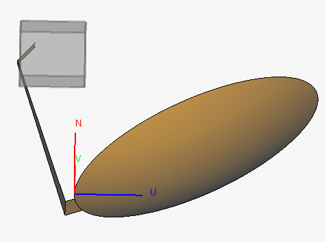 Figure 2. An offset reflector with an imported protected model of a horn (feed) showed in grey in CADFEKO.