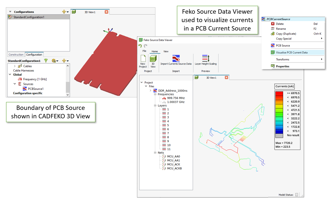 - The new Feko Source Data Viewer application can be launched from the context menu of PCB Current Data definitions. The currents can be viewed per frequency.