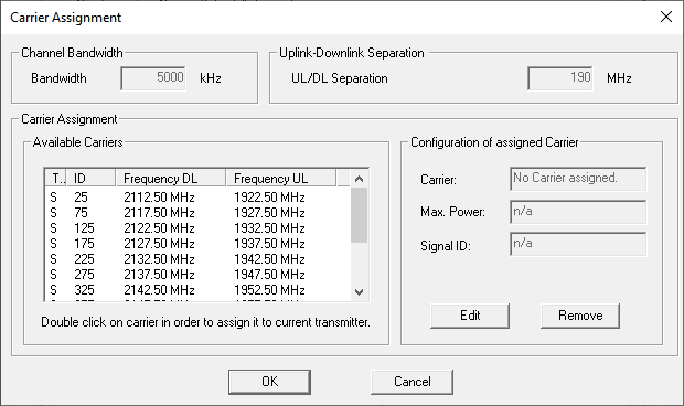 Define the first site, place the first omnidirectional antenna at this location, and assign a carrier. The antenna is placed at a height of 2.5 m above ground.