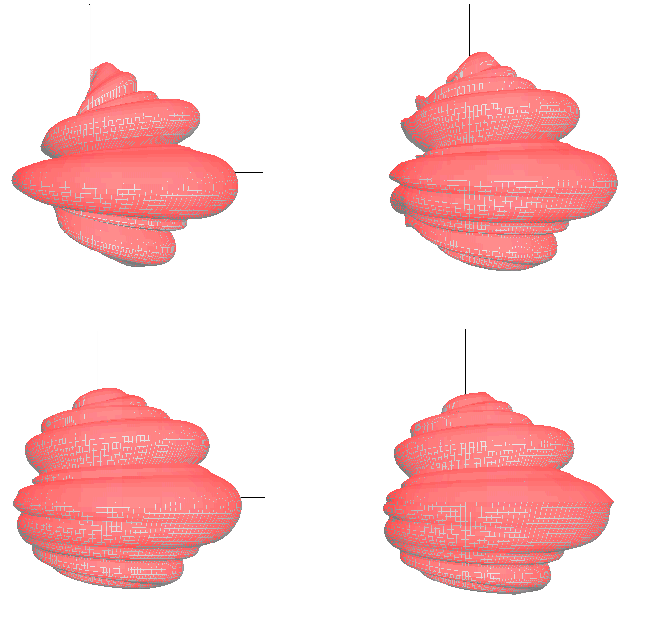 The views in Figure 3 represent the interpolated 3D patterns for the four different interpolation algorithms. Similar to the measured 3D antenna pattern also these figures show the side view of the antenna with the main lobe oriented towards the right.