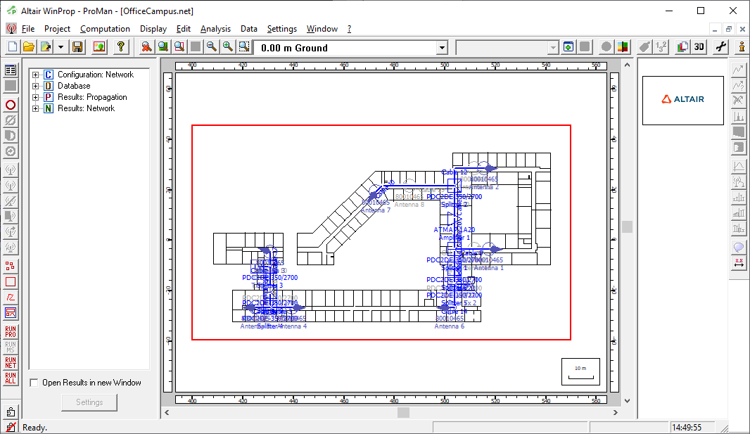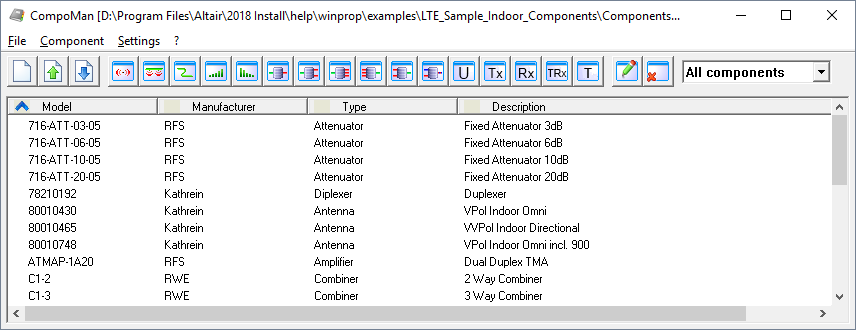 WinProp features a component database with manufacturer information. Components such as combiners, splitters, amplifiers can be added for modeling of the propagation environment.