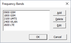 Besides the technical details, each component can be assigned a number of frequency bands. These frequency bands are useful when adding components to network projects, as the list of available components can be limited to a single band, making the list more comprehensible.