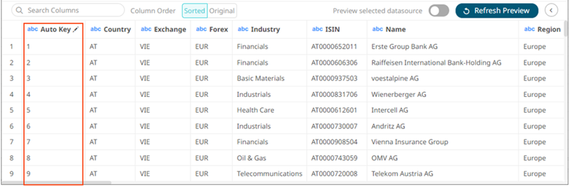 An automatic key field simply adds a new text column with a unique value for each row of the data source.
