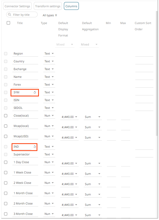 Modification of the Column Names