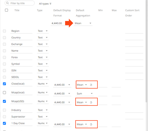 3. Click the drop-down list and select the Default Aggregation for the numeric columns. Default is Sum.