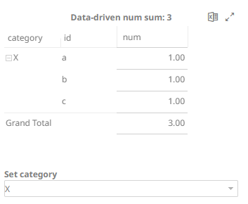 The first time you open the workbook and X is the category, the parameter data-driven num sum is 3.
