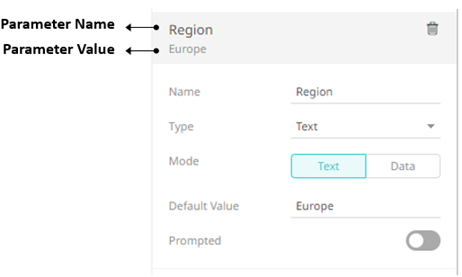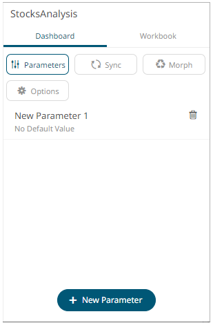 In addition to the parameters of the associated data tables that are used by visualizations and other parts on the dashboard, a Designer user can add new dashboard parameters which can be value sources inside actions and title of visualizations and parts.