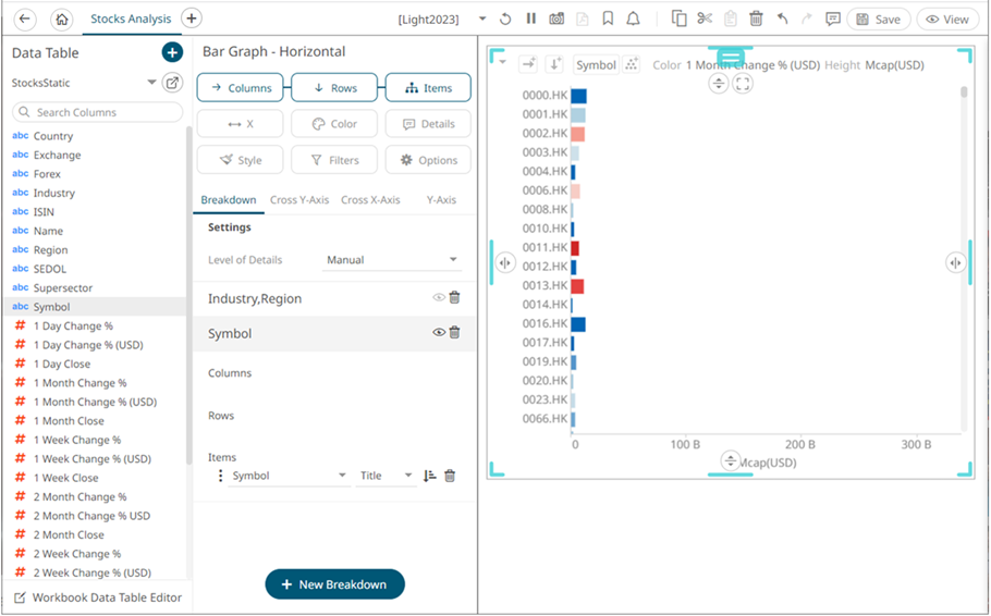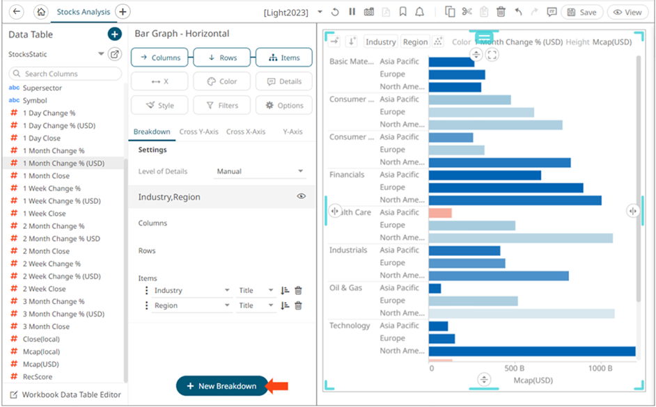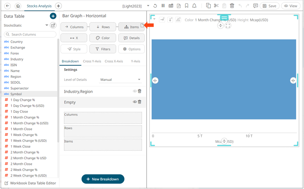 2. To add more breakdown levels, drag text columns to the Items pill or drop area.